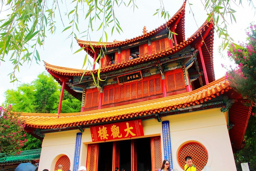 Đã du lịch Côn Minh, du khách nhất định phải ghé thăm công viên Đại Quan Lầu. Nơi đây được xem là một công viên văn hóa nổi tiếng của Trung Quốc, bên cạnh những cảnh đẹp ấn tượng của cỏ cây, hoa lá. non nước hữu tình. Do đó, đến đây, du khách sẽ được chìm đắm trong không gian văn hóa mang đậm màu sắc Trung Hoa. Điều đặc biệt là du khách còn có cơ hội chiêm ngưỡng câu đối dài nhất với 180 chữ, mỗi bên 90 chữ khắc họa cảnh thiên nhiên tươi đẹp của hồ Điền Trì và Đại Quan Lầu, là sự hội tụ diệu kỳ của nhà thư pháp, các bậc văn sĩ khi tới thưởng nguyệt bên hồ.